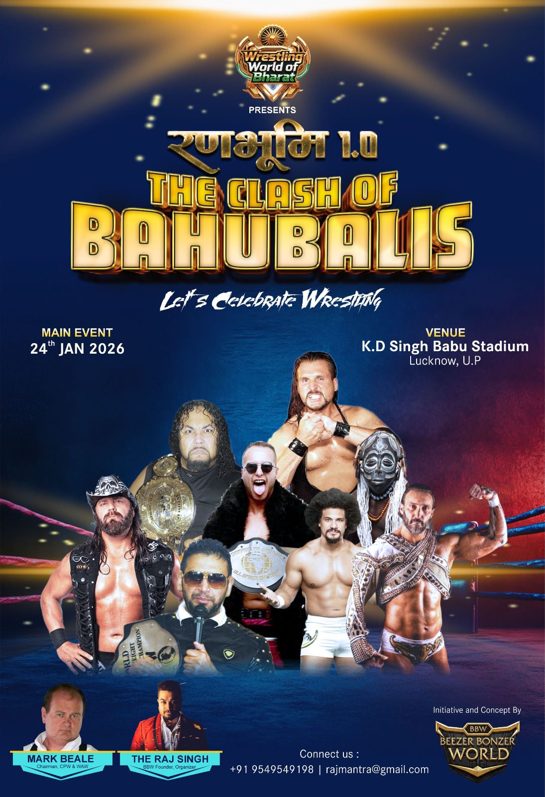 Beezer Bonzer World is excited to announce our inaugural Ranbhoomi 1.0, “The Clash of Bahubalis” under the banner of Wrestling World of Bharat, the showdown is scheduled on the 24th of January 2026, in KD Singh Babu Stadium, Lucknow.